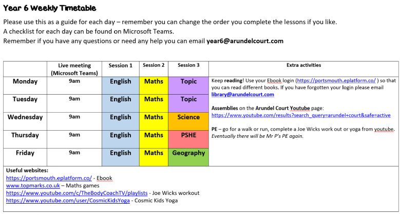 If you have any questions or are struggling at all, please email year6@arundelcourt.com
