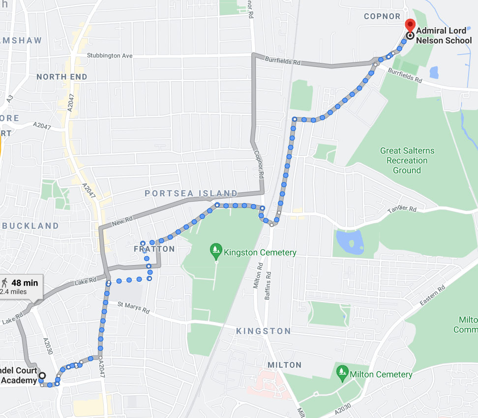 Walking to ALNS from Arundel Court would take around 48 minutes.